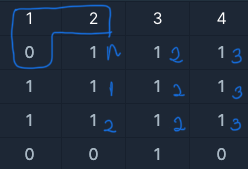 board[i][j] += min(board[i-1][j], board[i][j-1], board[i-1][j-1])