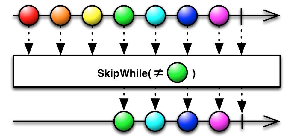 다른 Observable이 요소를 방출할 때까지 기존의 Observable의 요소를 스킵하는 연산자이다.