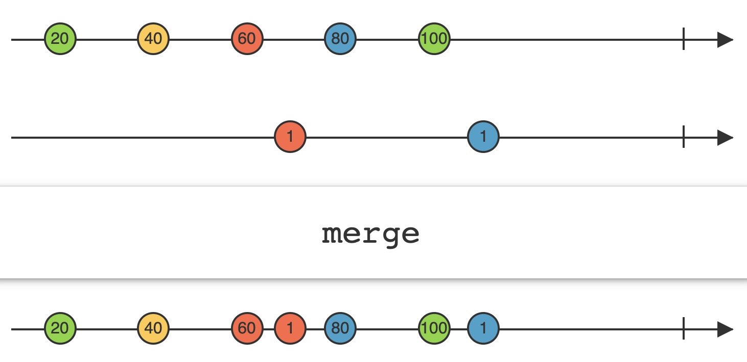 여러 개의 스트림을 합치는데 순서를 보장하지 않는다.